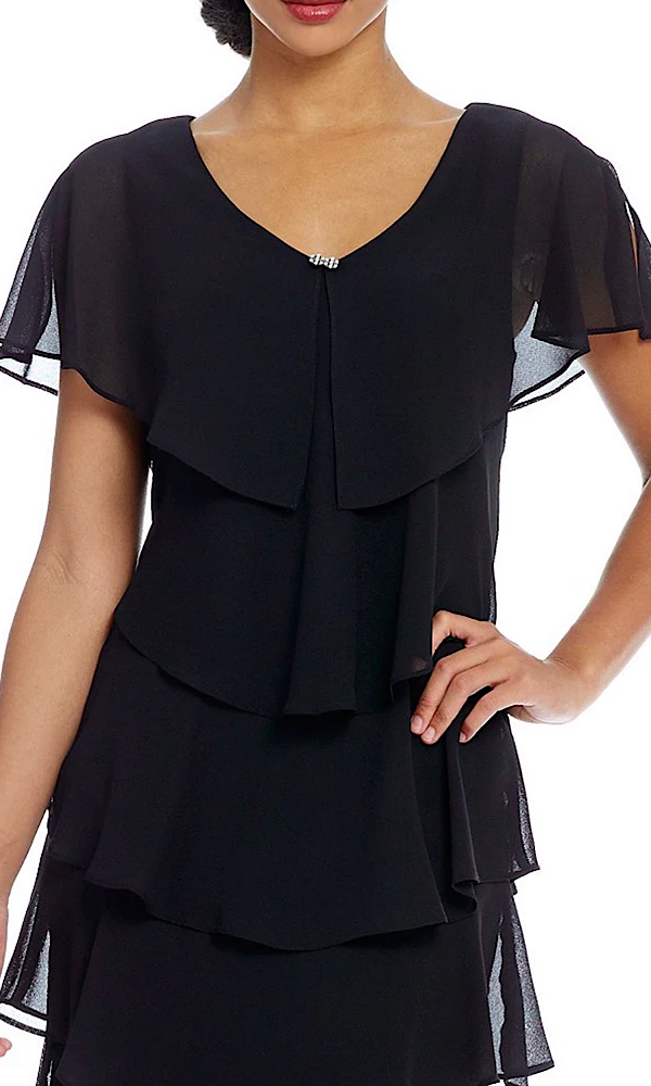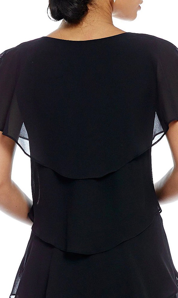 Georgette Tiered Capelet Dress-Black